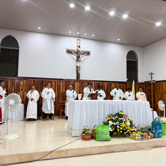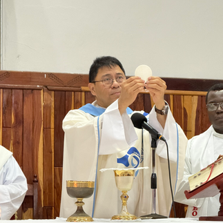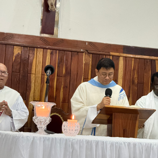 Los visitadores, P. José Nicolás Espinoza, SVD, y P. Jerome A. Márquez, SVD, fueron recibidos con alegría por la comunidad parroquial. El P. Eugenio Agyapong, SVD les dio una cordial bienvenida en nombre de todos los fieles. La Eucaristía fue presidida por el P. Jerome y contó con la participación del Superior Regional, P. Mateo Yeng, SVD, junto a los demás misioneros verbitas de la comunidad.